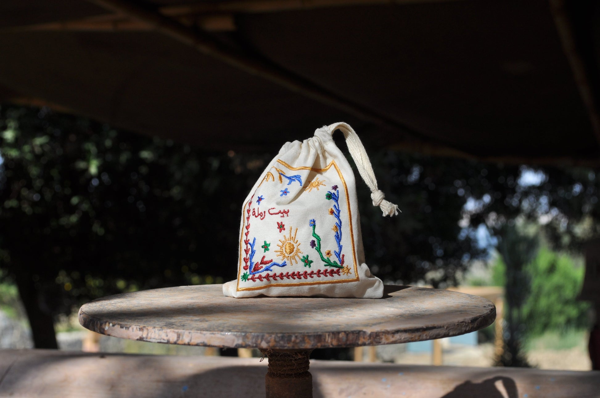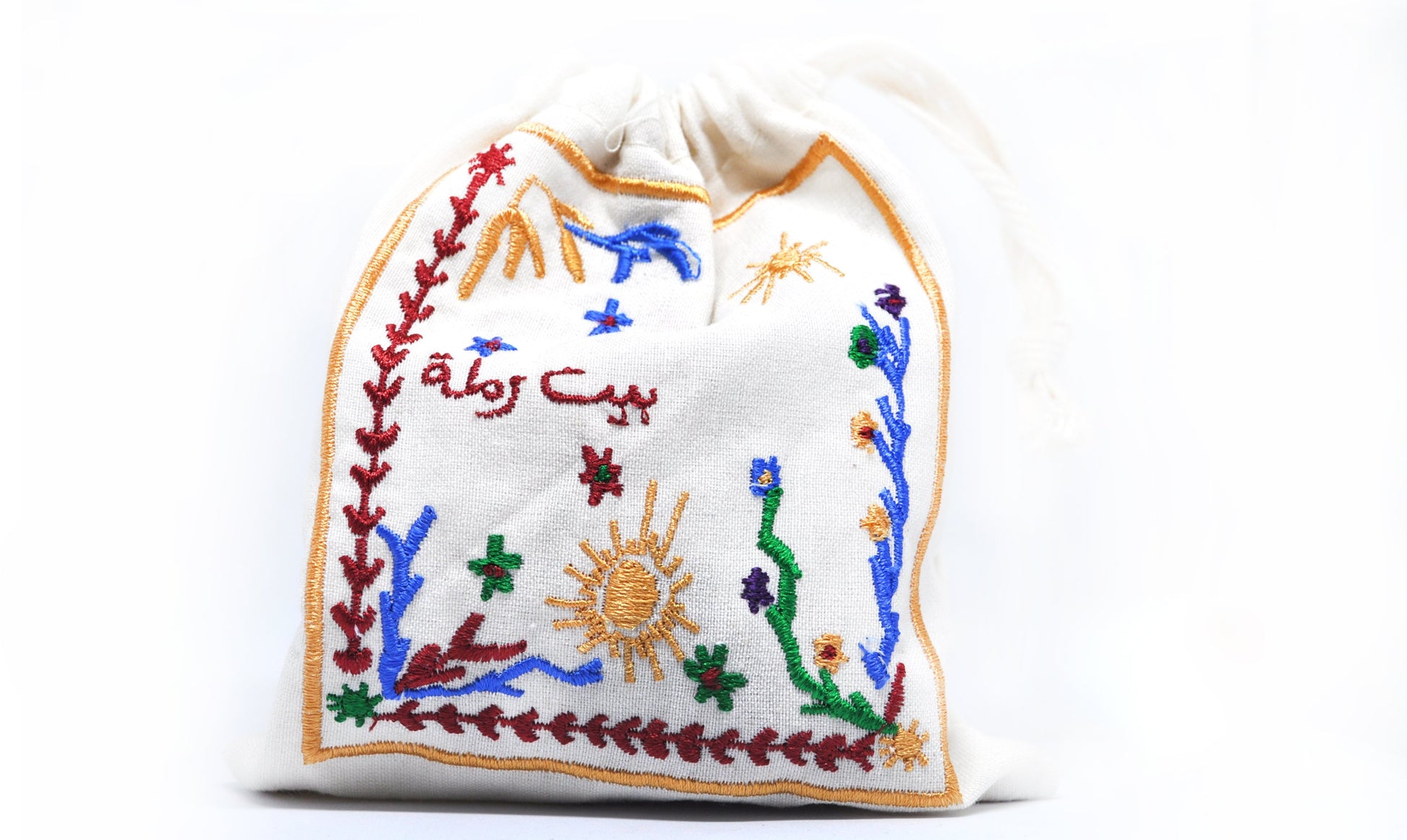 Beit RAMLA empty dust bags, are made out of raw Egyptian fabric with embroidery.
