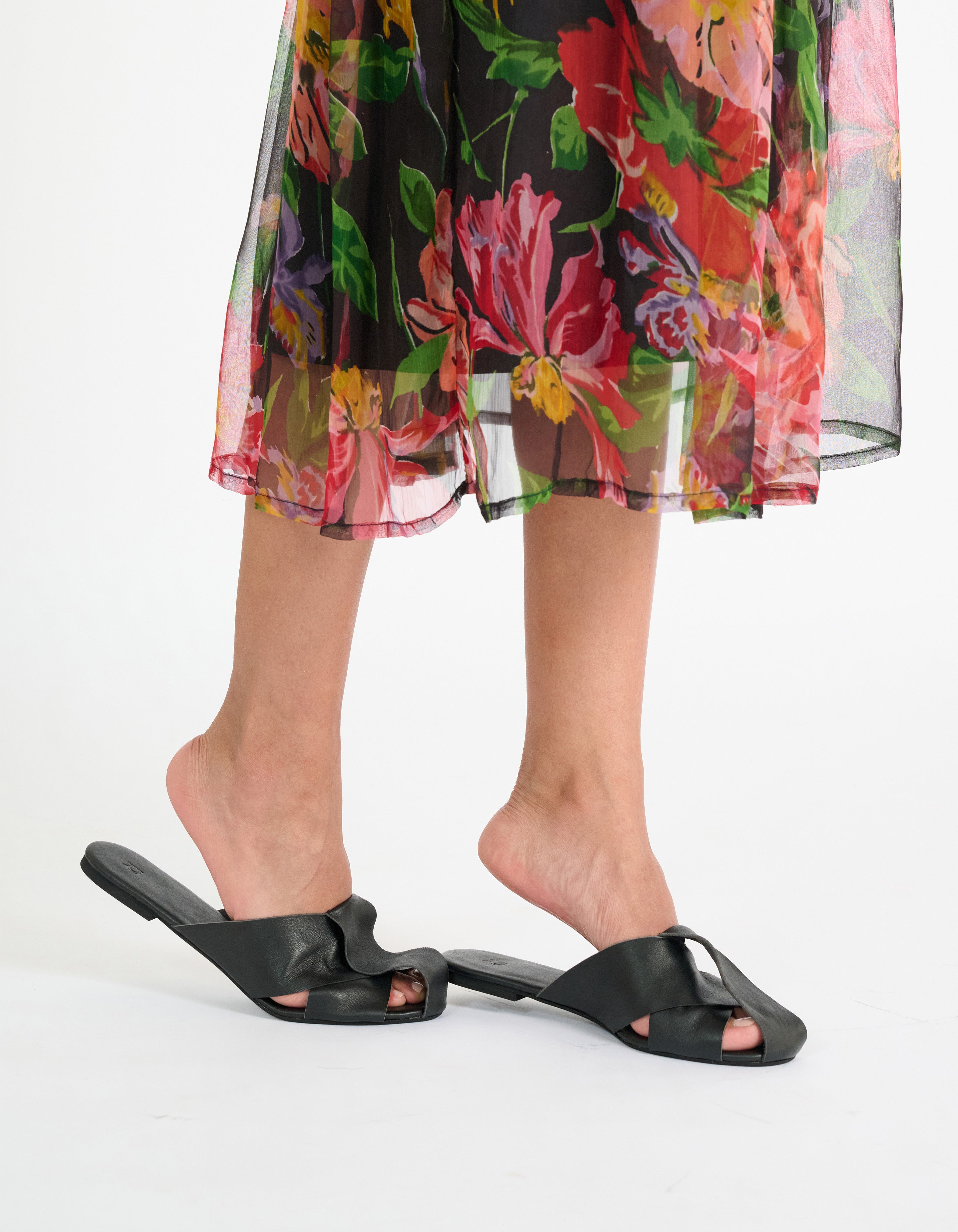 Inspired by the quiet luxury and refined beauty of the Khaliji aesthetic, Dane celebrates the harmony between tradition and modern femininity. Handcrafted from the finest genuine leather, this sculpted mule features soft, overlapping straps that wrap gracefully around the foot, creating a fluid silhouette that is both flattering and effortlessly elegant.