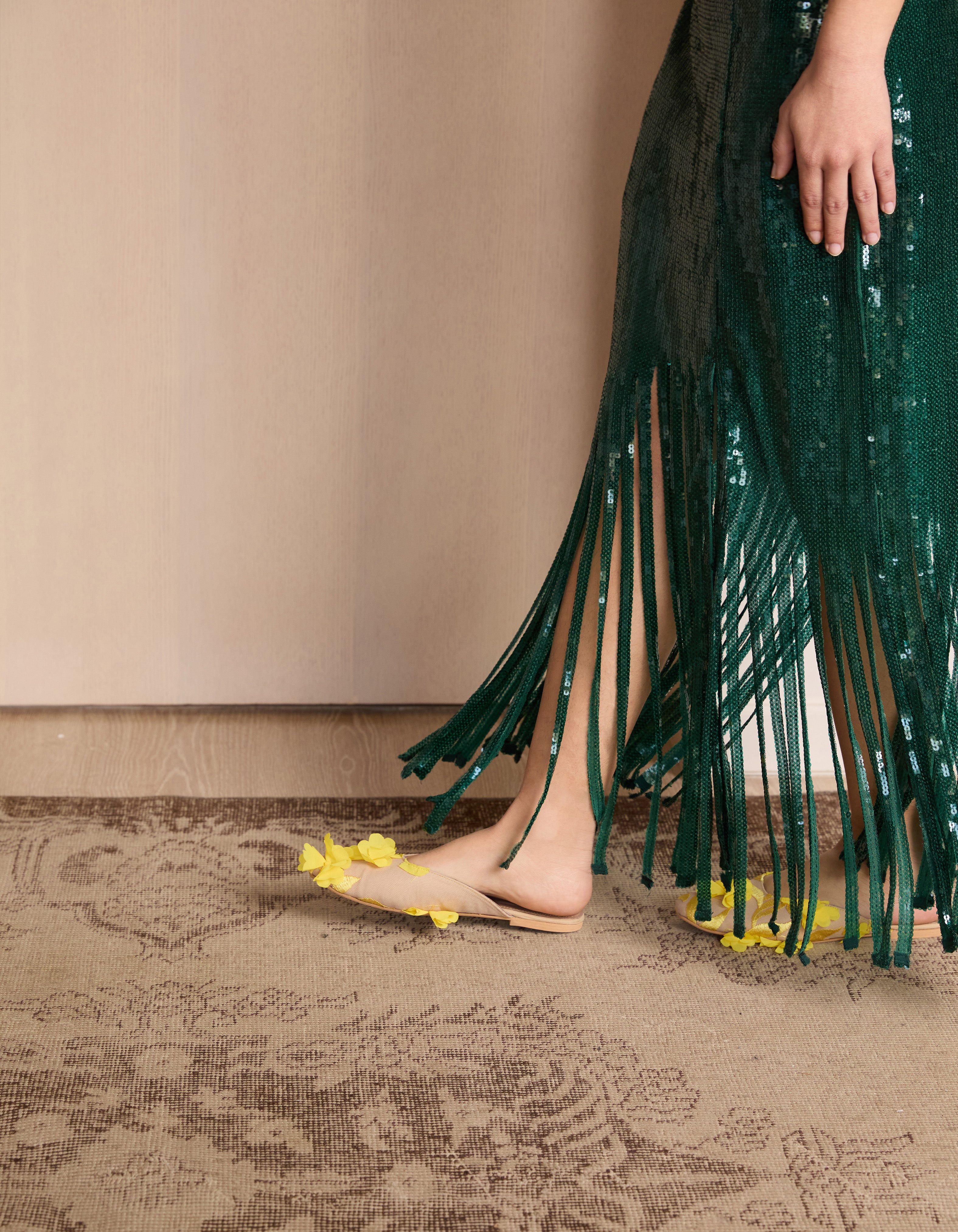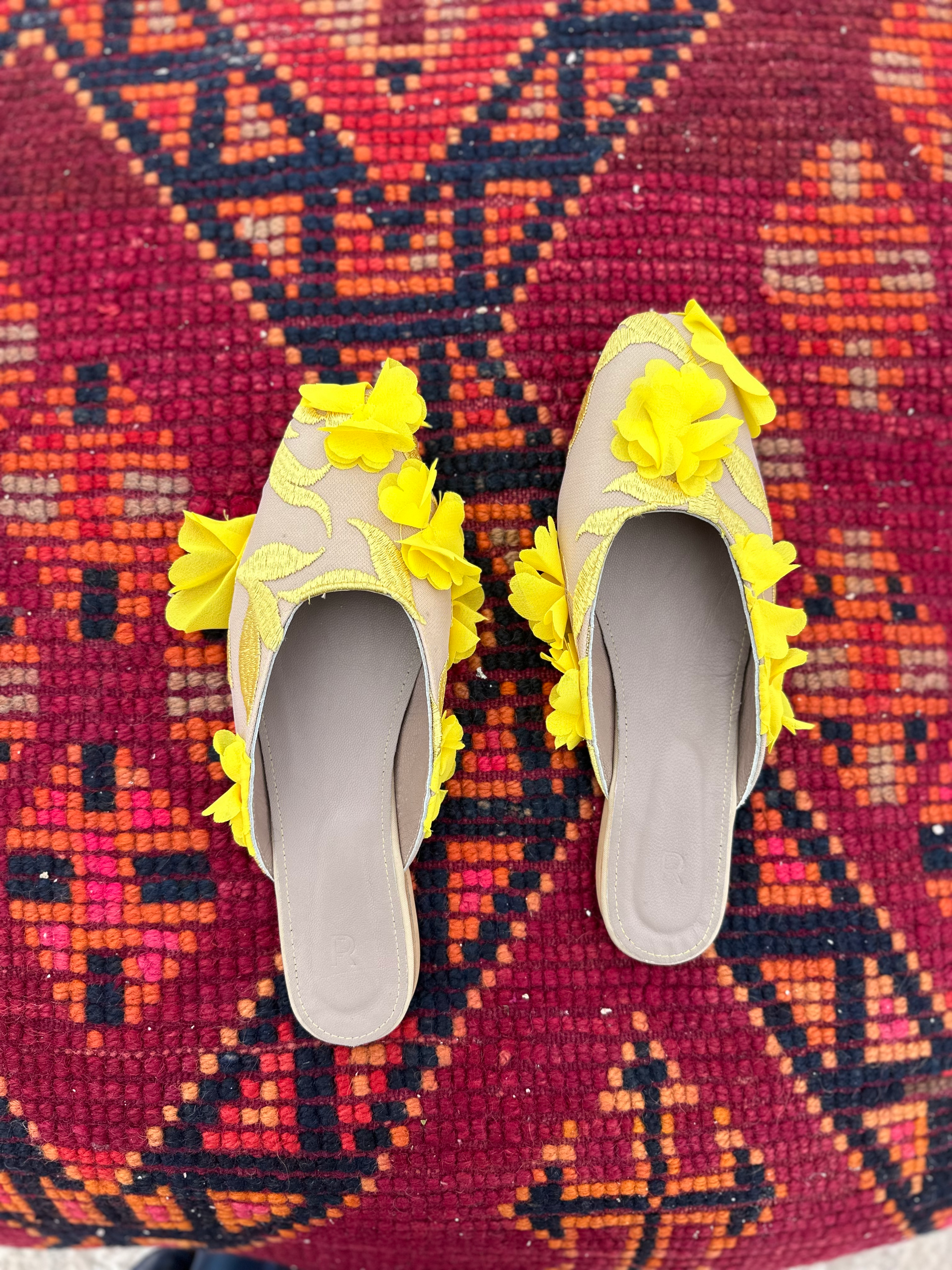 Step into a world where craftsmanship meets femininity. Dhalia, RAMLA’s exclusive design for Level Shoes, is a celebration of elegance, artistry, and the charm of spring in full bloom. Adorned with delicate yellow 3D flowers, each pair captures movement, softness, and the refined spirit of the RAMLA woman.