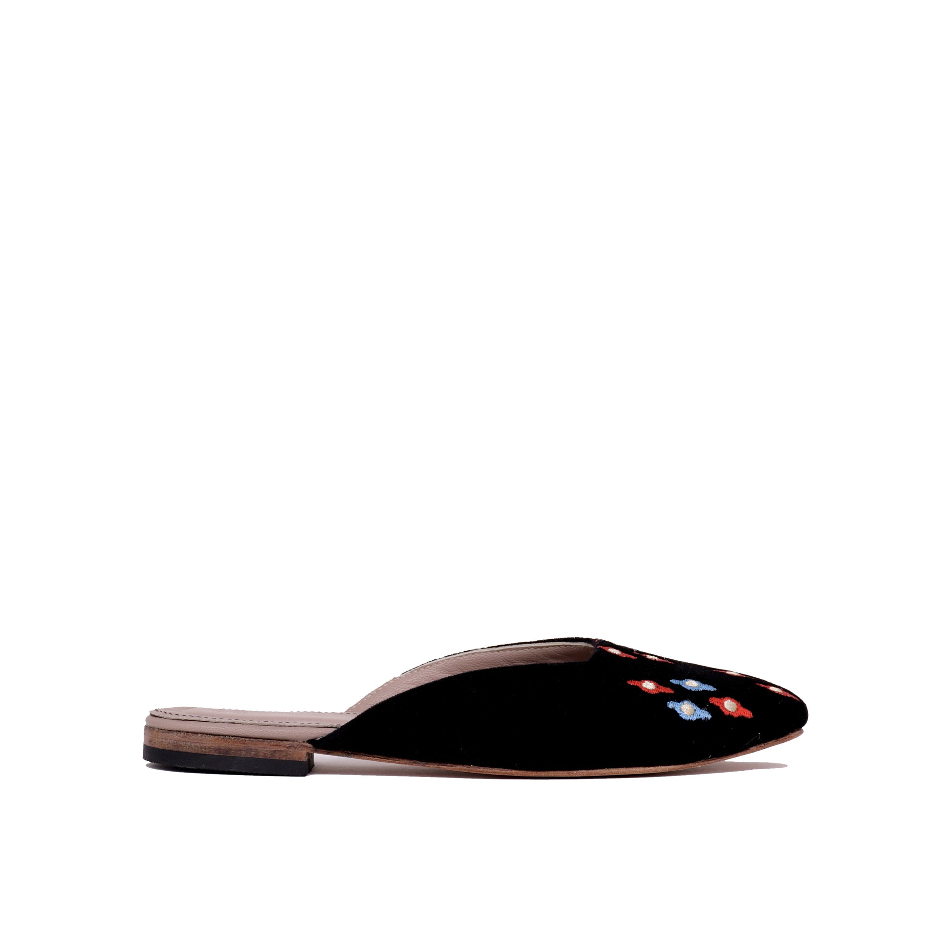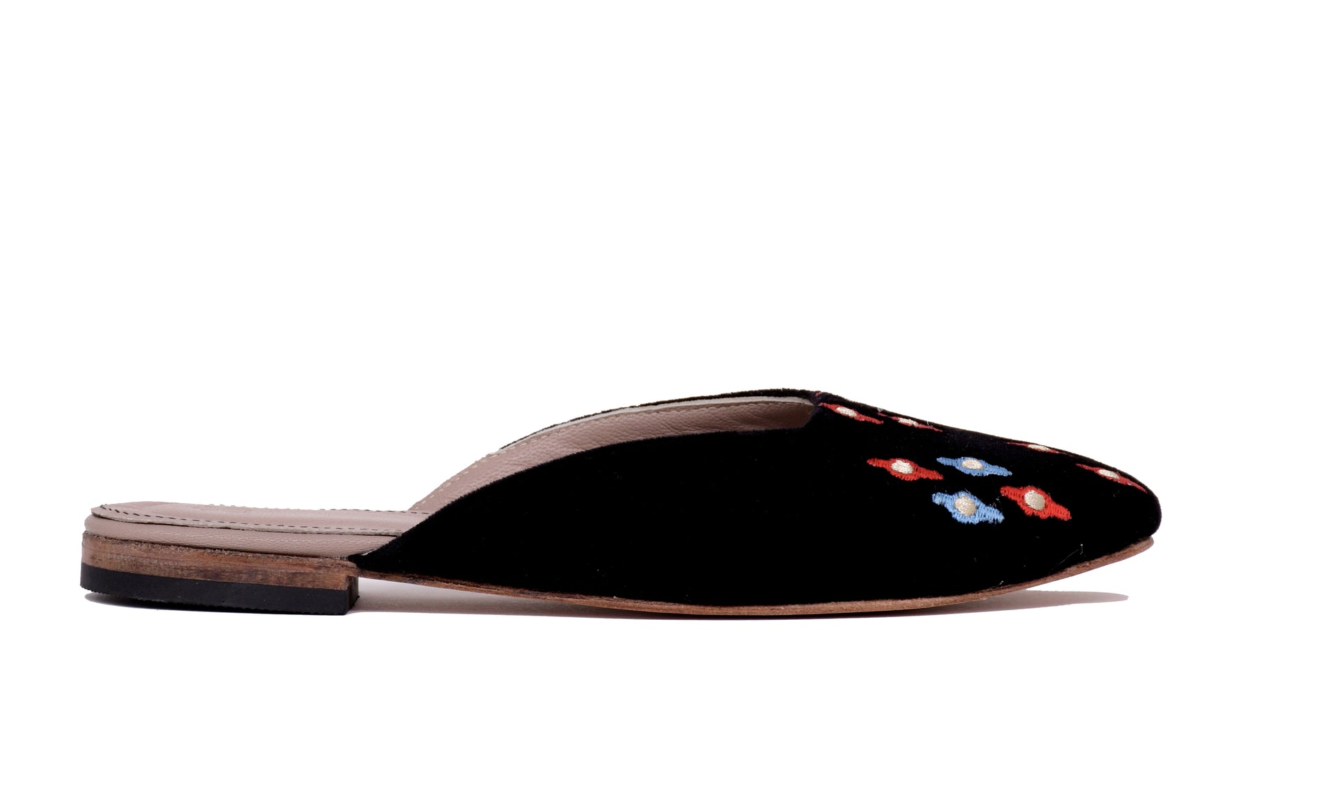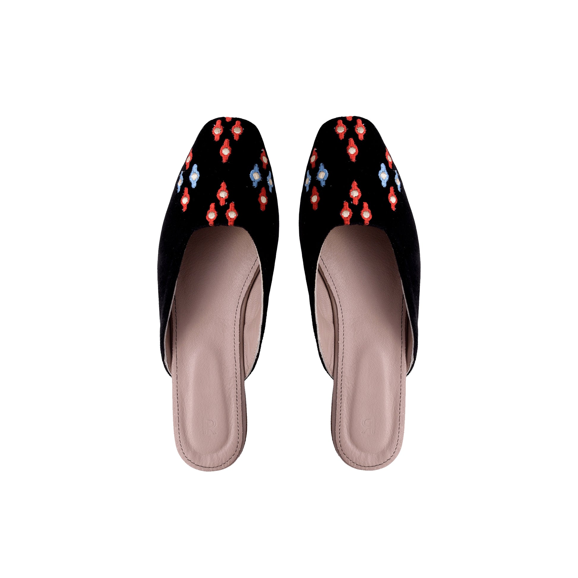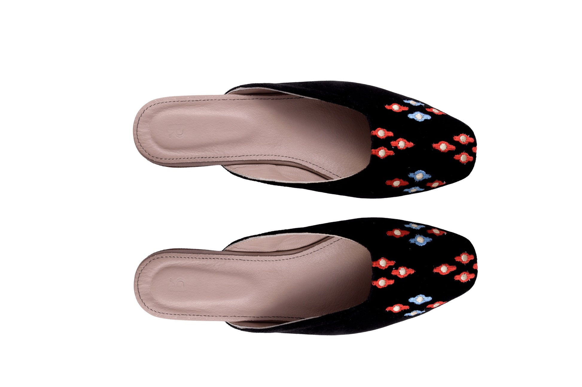 Crafted from the finest silk-cotton black velvet, this mule offers an irresistibly soft touch, wrapping your feet in elegance and comfort. Designed with a vintage flare ,the sophisticated and feminine woman of RAMLA, it embodies effortless grace and timeless charm. A part of RAMLA’s limited-edition Ramadan Spring Collection, this exquisite piece is more than just footwear—it’s a statement of refinement. A beautiful addition to your wardrobe, perfect for elevating any look with a touch of delicate luxury