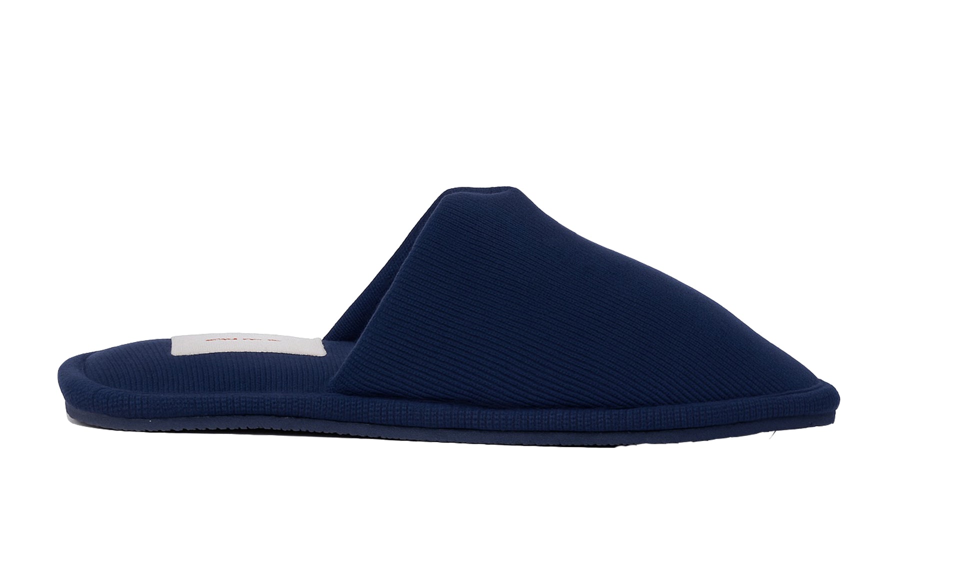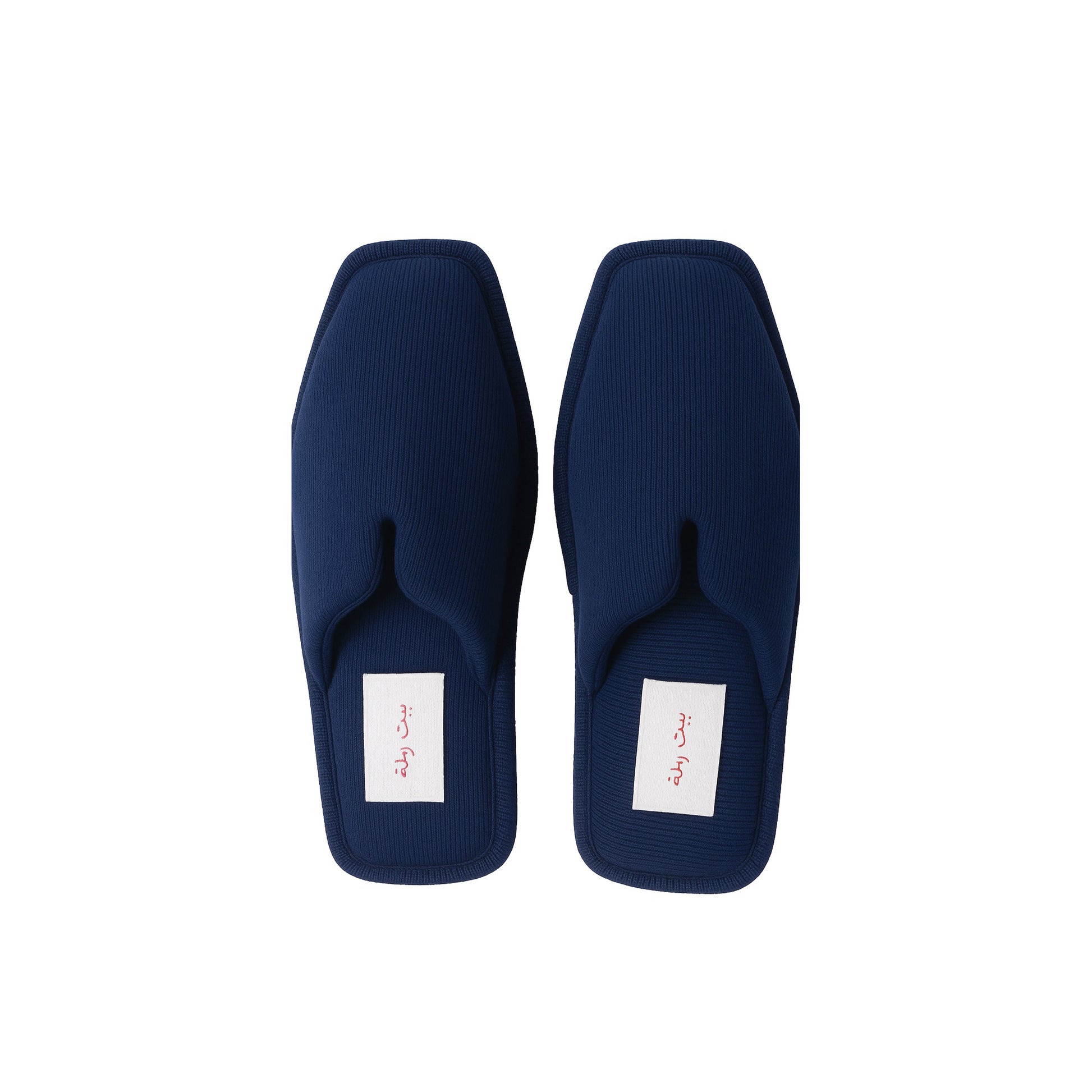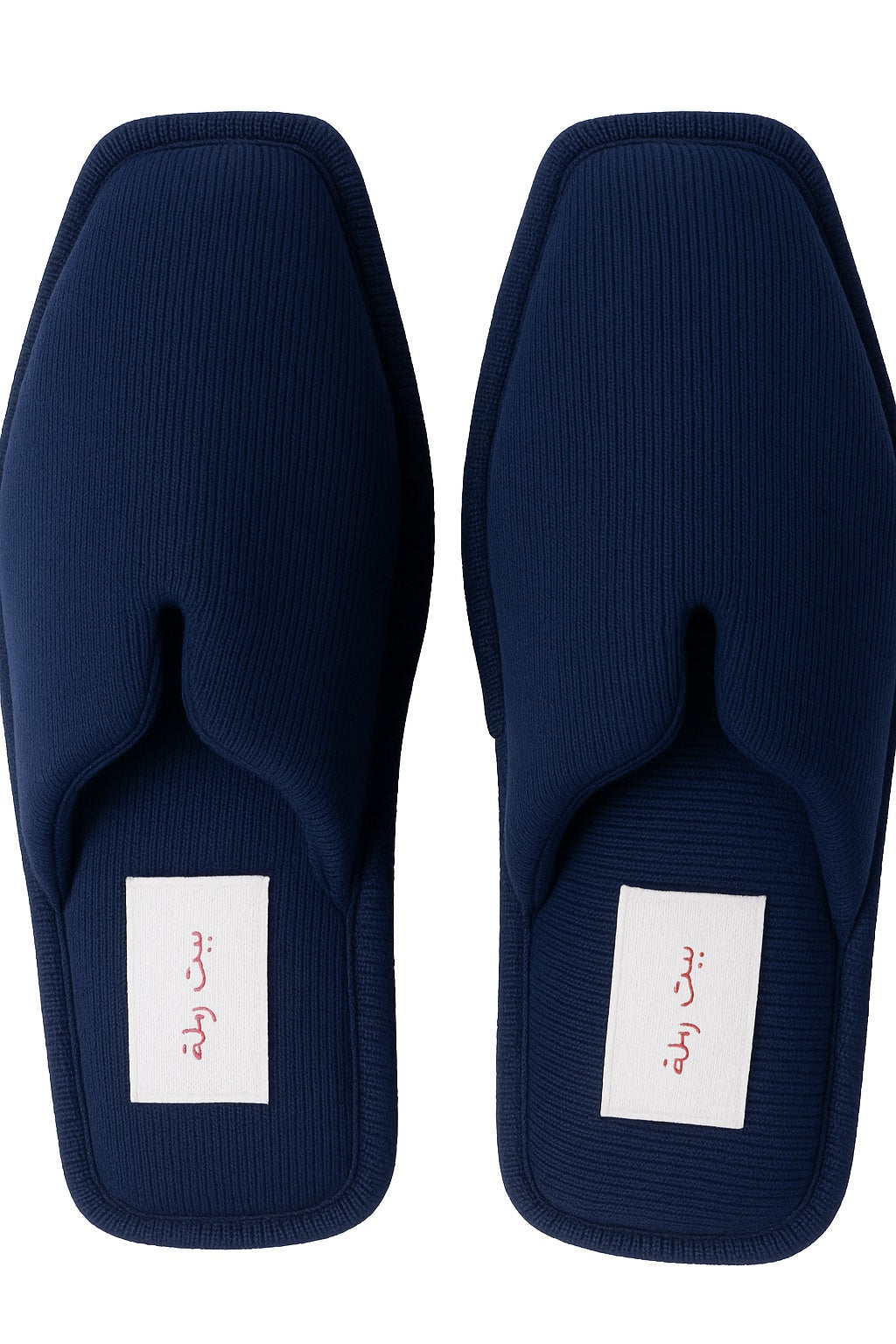 Night ElBeit home Navy slippers made out of Egyptian cotton cashmere fabric available limited number.
