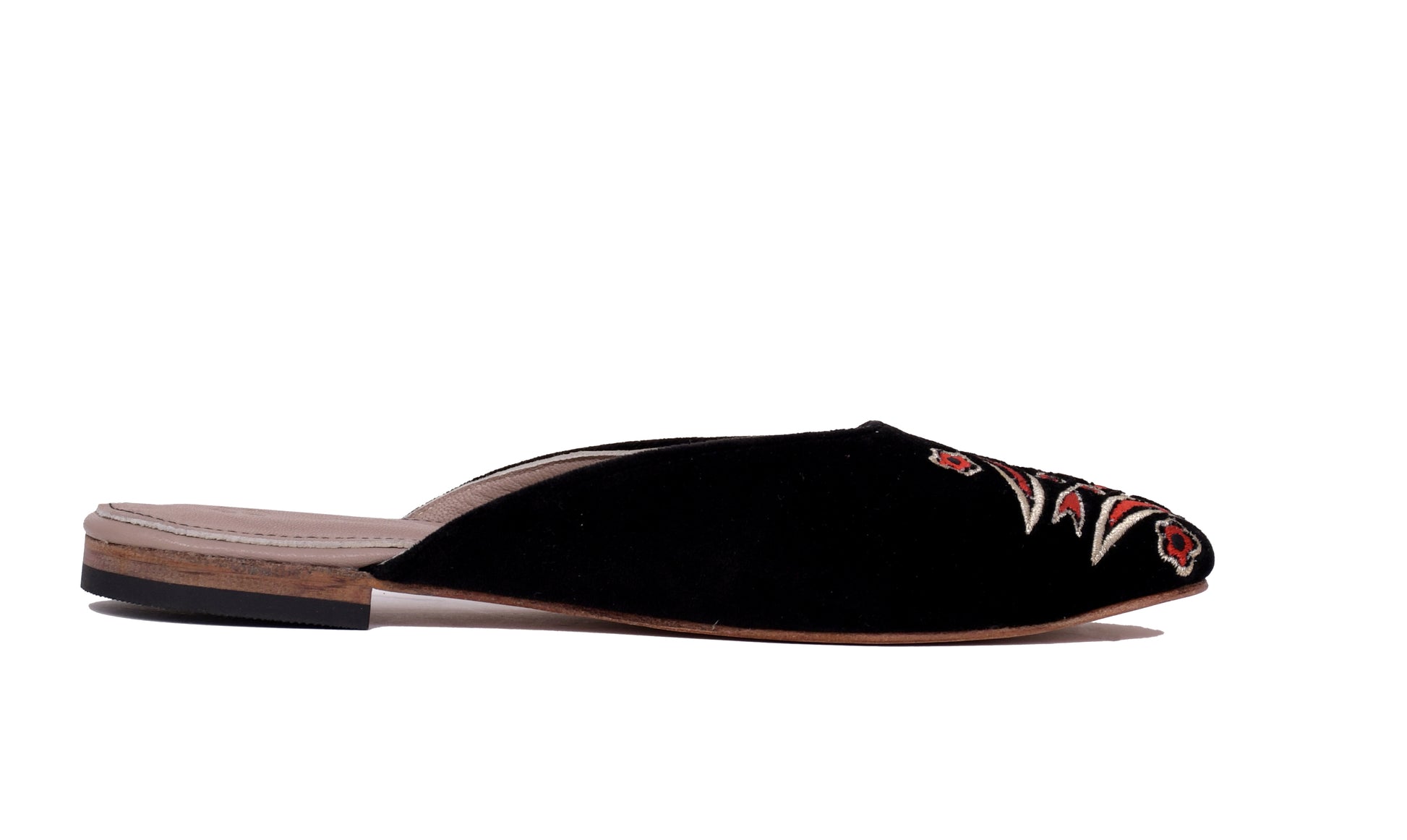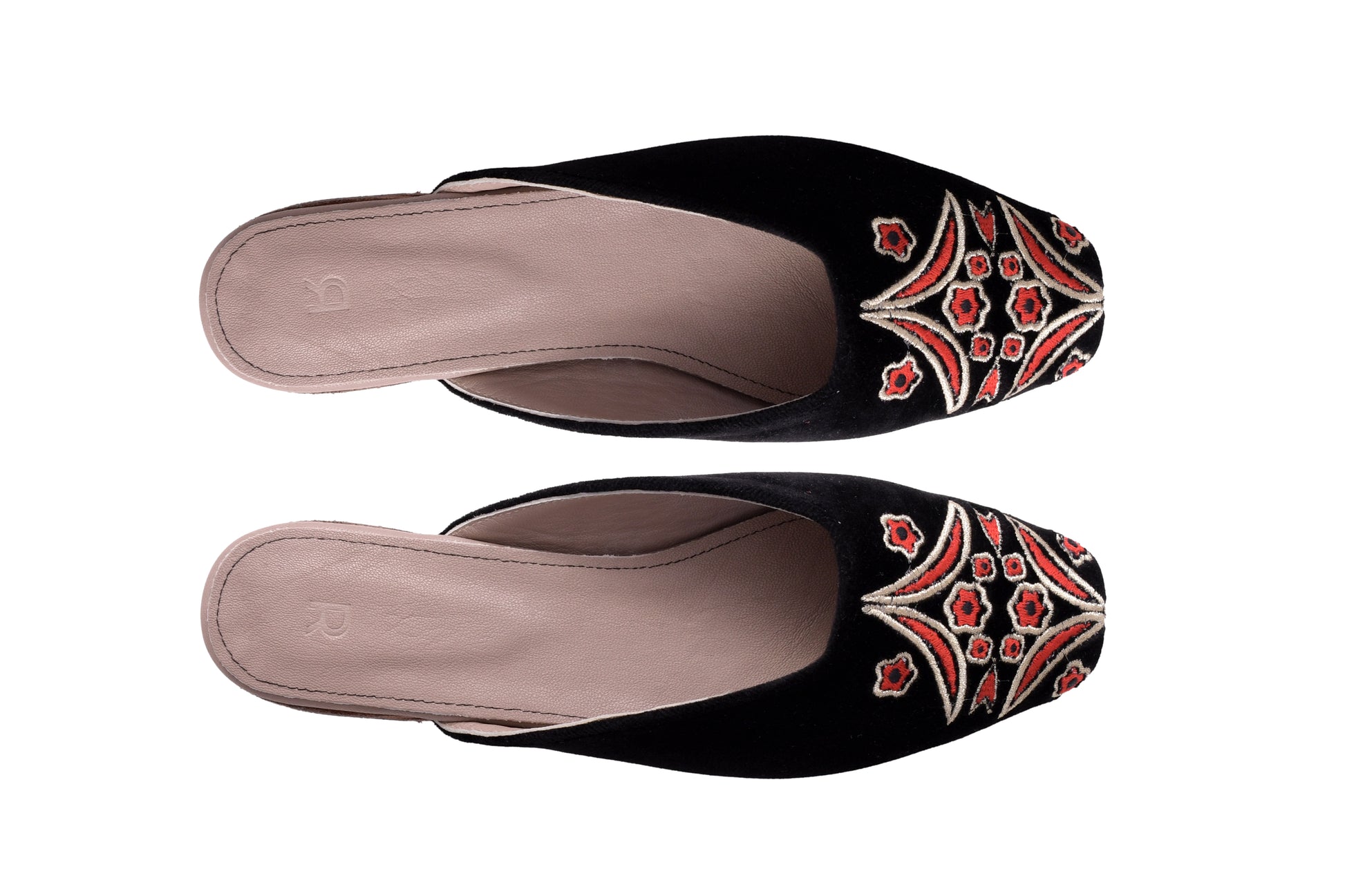 Crafted from the finest silk-cotton black velvet, this mule offers an irresistibly soft touch, wrapping your feet in elegance and comfort. Designed with a vintage flare, for the sophisticated and feminine woman of RAMLA, it embodies effortless grace and timeless charm. A part of RAMLA’s limited-edition Ramadan Spring Collection, this exquisite piece is more than just footwear—it’s a statement of refinement. A beautiful addition to your wardrobe, perfect for elevating any look with a touch of delicate luxury