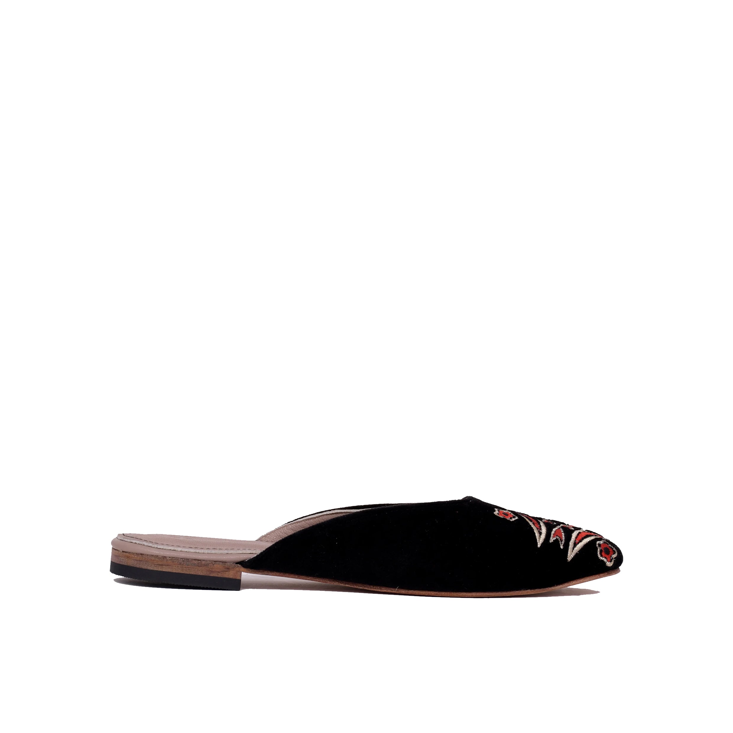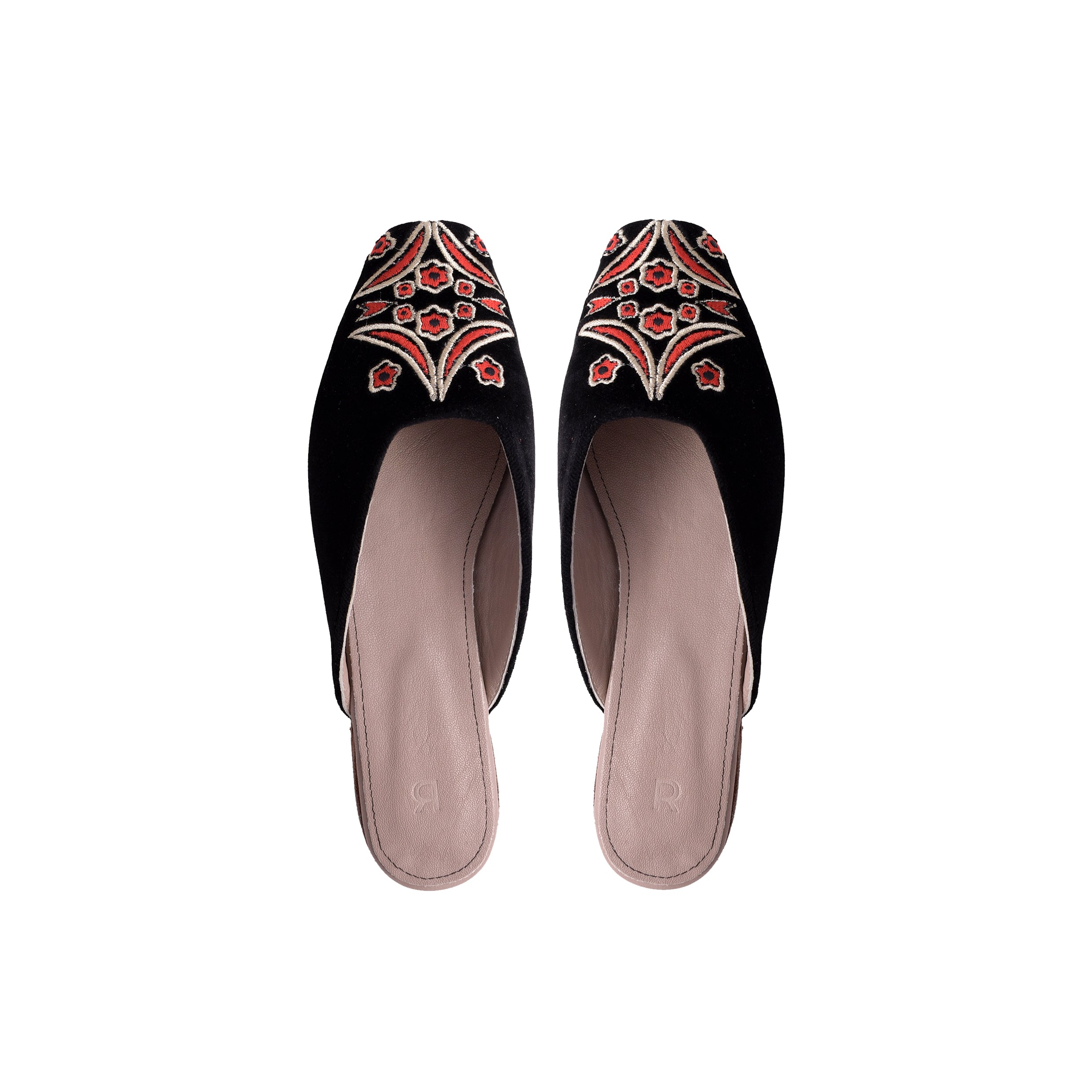 Crafted from the finest silk-cotton black velvet, Rustic Revival brings a luxurious softness that embraces the foot with comfort and grace. Its vintage-inspired embroidery, rendered in warm rustic tones, celebrates the elegance of the sophisticated RAMLA woman—feminine, expressive, and deeply connected to timeless craftsmanship.
